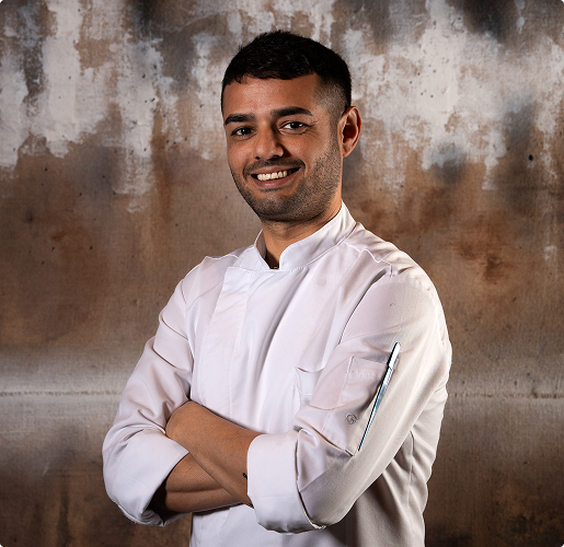 His deep connection with ingredients and instinctive elegance in flavour balance make each plate precise and expressive.